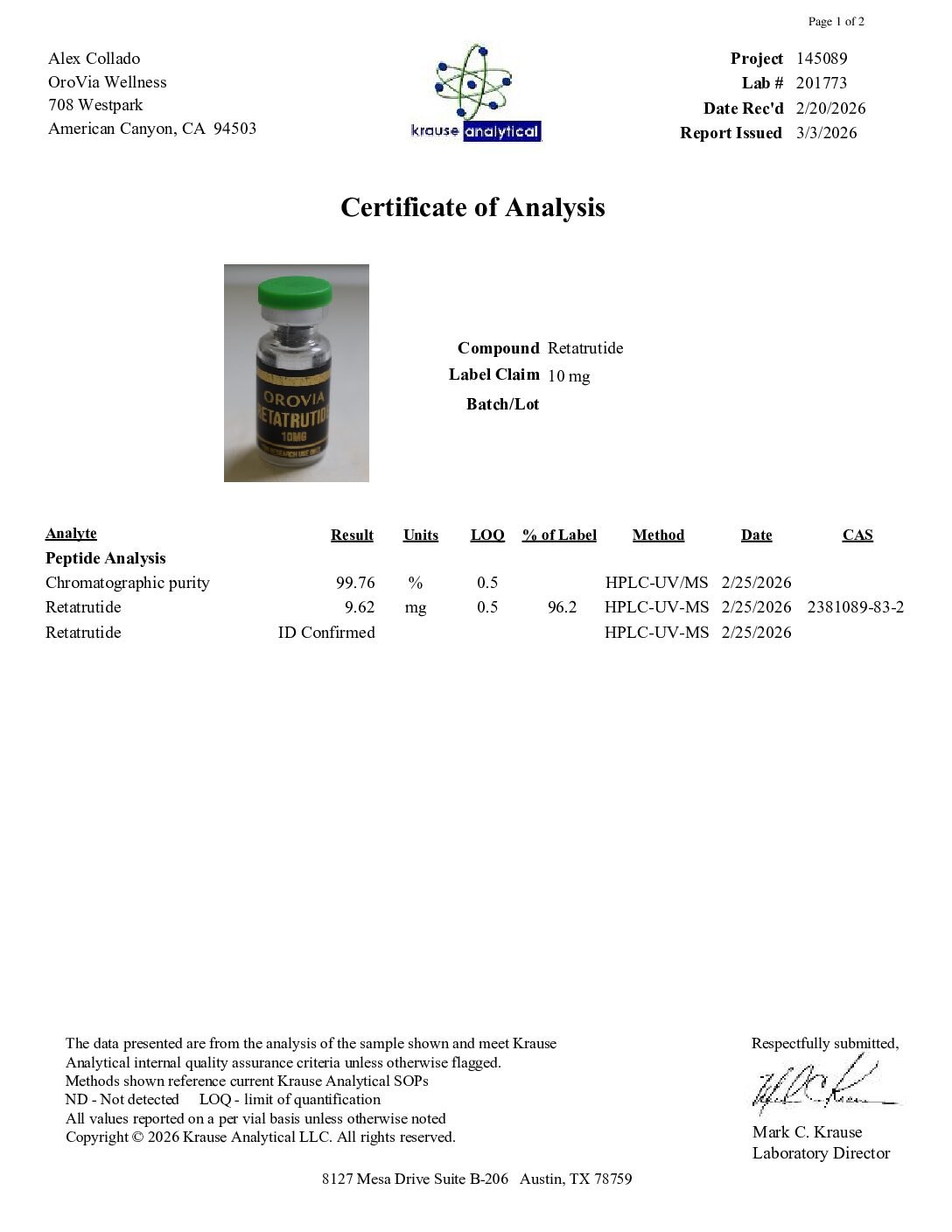 COA: Included in product image gallery