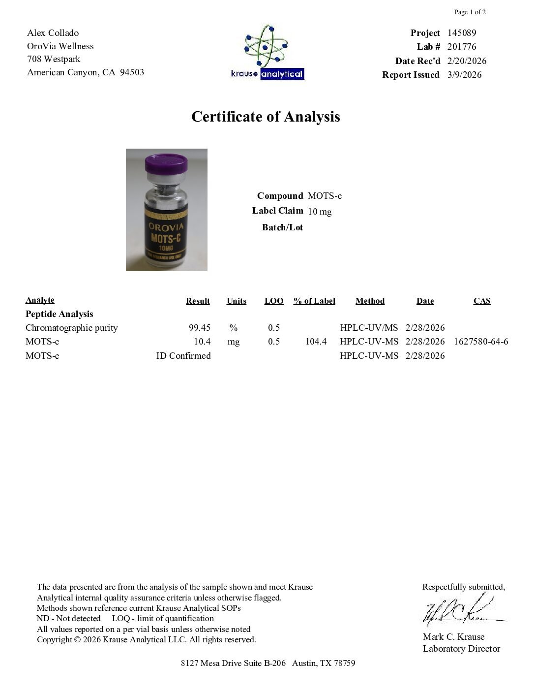 • COA: Included in product image gallery